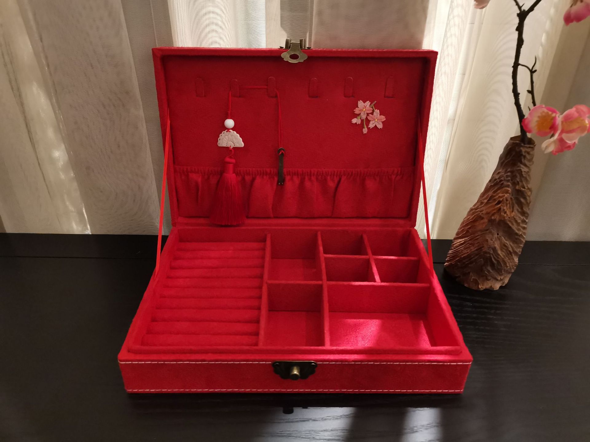 Vintage Chinese Style Jewelry Box with Lock and Velvet
