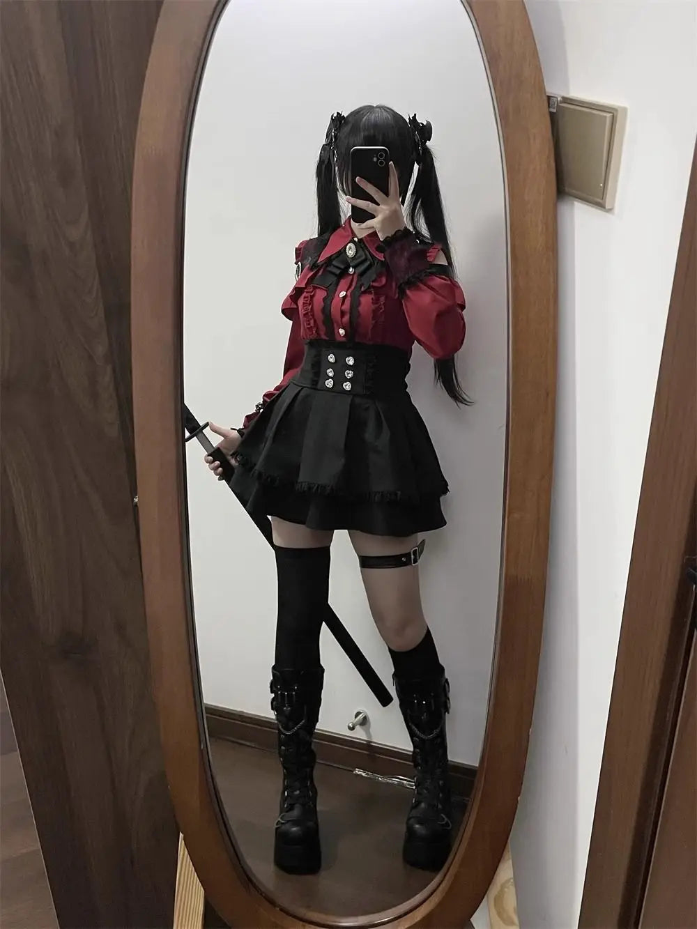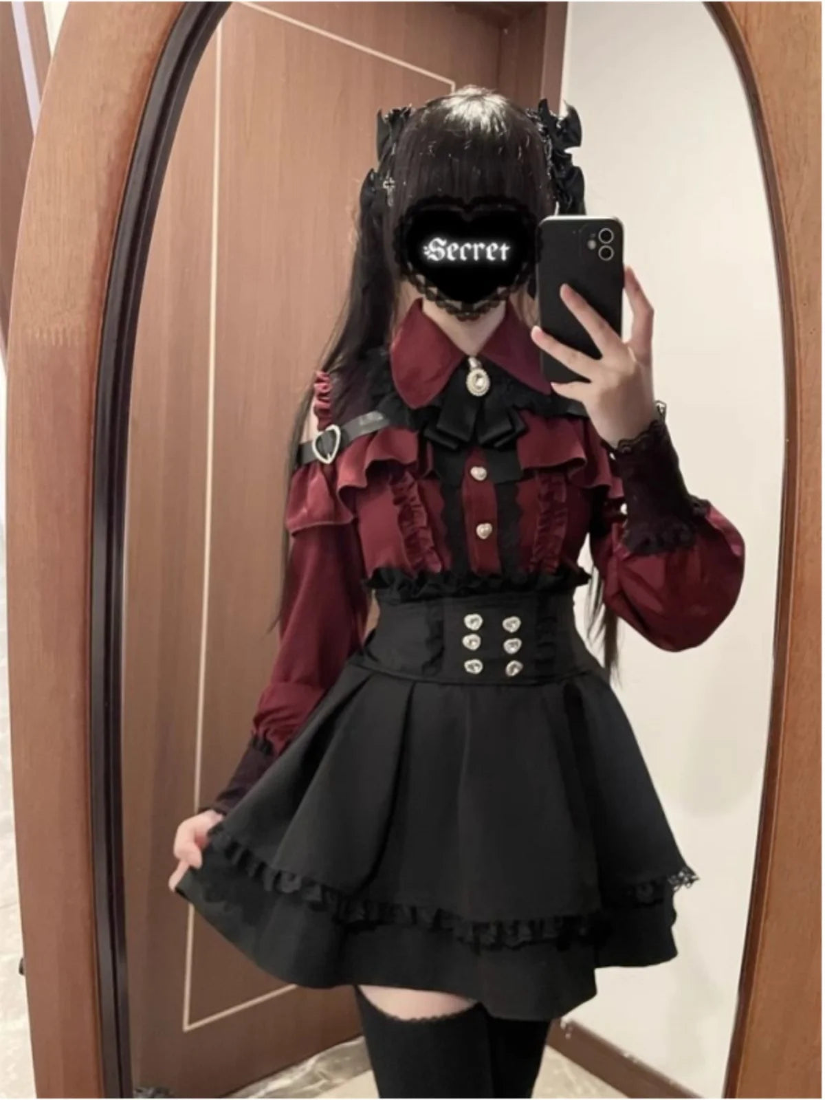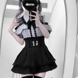 The dark shoulder baring top of this set is a bold statement piece, perfect for those who want to make a fashion statement.