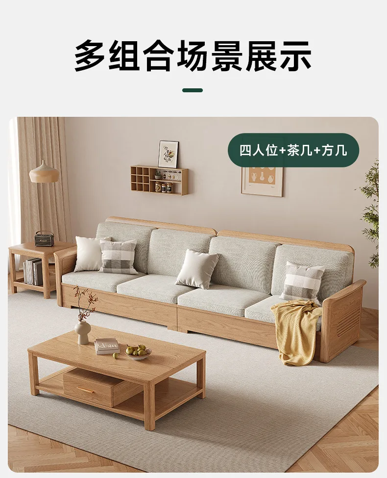 Nordic ash wood solid wood sofa combination fabric sofa modern simple large and small apartment living room